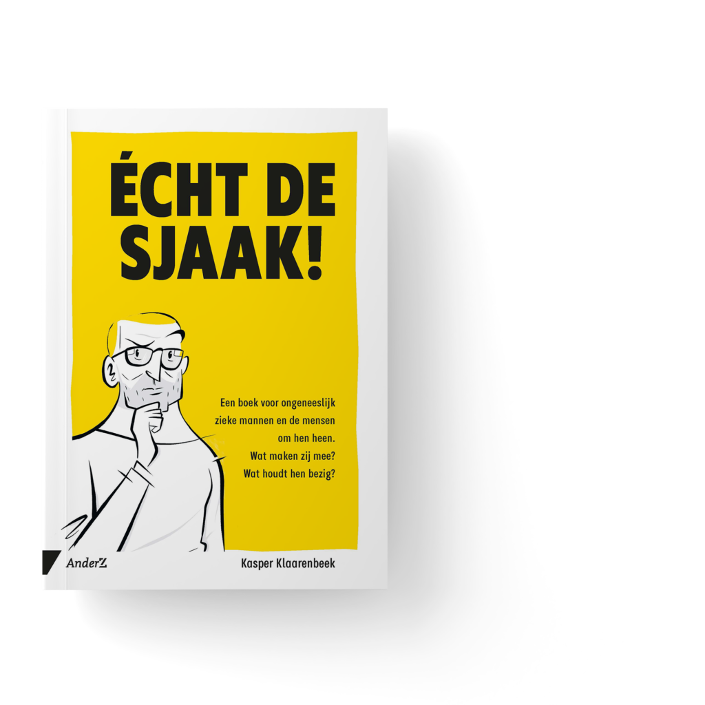 “Ik was veel gaan lezen en ik kwam veel verhalen tegen van vrouwen die kanker hadden gekregen. Dat waren vaak roman-achtig geschreven boeken, die je van A tot Z moet lezen, en dan heb je een heleboel ervaringen maar geen oplossingen. En dat vond ik irritant. Daar zit een belangrijk verschil tussen mannen en vrouwen. Mannen willen een checklistje, een modelletje om in te vullen. Oké, moet ik die stappen doen en dat regelen? Dan ga ik daarover nadenken. Dat vond ik nergens. Mijn plan was een bedrijfskundig boek schrijven over ongeneeslijk ziek zijn en hoe je dat zou moeten doen. Dat is niet gelukt. Het is een veel persoonlijker boek geworden dan ik bedacht had. Maar ‘Echt de Sjaak!’ is all-in Kasper, en georiënteerd op anderen helpen.