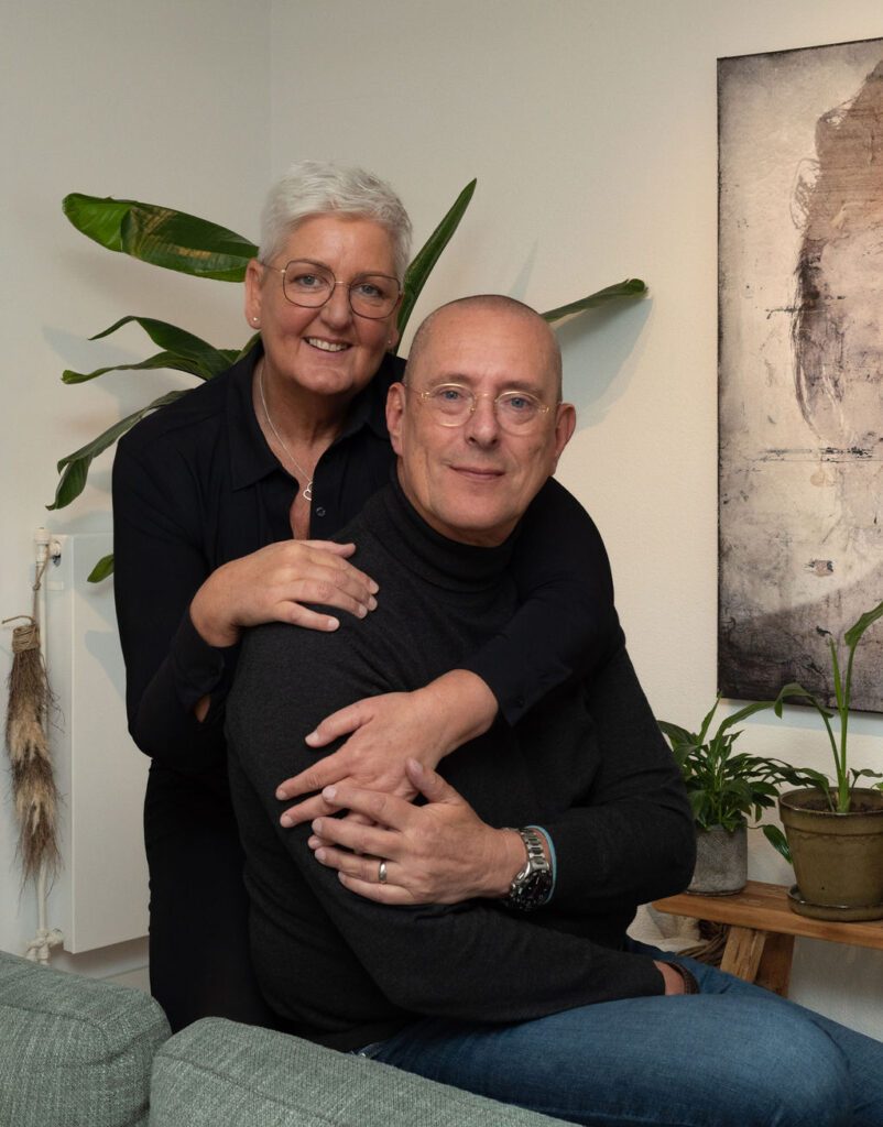 “Ik ben gaan drinken om niet te hoeven voelen. Ontkennen, wegduwen, overschreeuwen dat ik ziek was en wat ik daarbij voelde. Ik hield nog steeds heel veel van Margo en ik wilde helemaal niet bij haar weg. Maar ik had geen idee hoe ik met haar moest dealen in een situatie waarvoor ik geen oplossing had en ík het probleem was. Ik heb lang geleefd alsof ik onsterfelijk was. Tot ik wat andere klachten kreeg, ik heb twee hartinfarcten gehad en nog een paar ingewikkelde dingen, dacht ik altijd dat ik nog 25 was. En toen was ik – knip – in één keer 58. Eigenlijk praten we maar weinig over de dood. De grote rituelen rondom dood, herdenkingen en dergelijke zijn in onze Nederlandse cultuur verdwenen. We zijn in een maakbaarheidsmaatschappij terecht gekomen. Ergens in onze opvoeding, onze opleiding, in het leven, zou er een moment moeten komen dat je de levenskunst leert van het omgaan met dit soort situaties. Ze noemen dit ook wel levend verlies: je weet dat je doodgaat, je bent je gezondheid verloren, maar je bent er nog. Ik heb hulp gezocht en bij het Helen Downing-instituut goede begeleiding gekregen en in een lotgenotengroep gezeten. En dan nog, het is natuurlijk niet leuk of gezellig. Ik ga ermee naar bed en ik sta ermee op. Elke morgen moet ik mezelf onder de douche even aanzetten. Dan denk ik: oké, dankjewel, ik ga er een mooie dag van maken. Daar was het schrijven van mijn boek ook een heel fantastisch ding in.”